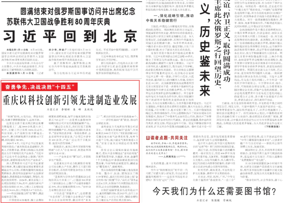 5月11日,,,,《人民日报》在头版要闻以《重庆以科技创新引领先进制造业发展》为题,,报道了重庆市加快打造国家重要先进制造业中心情况,,,,并以忽米网与凯时尊龙合作搭建的动力系统协同共生未来工厂为例,,介绍...